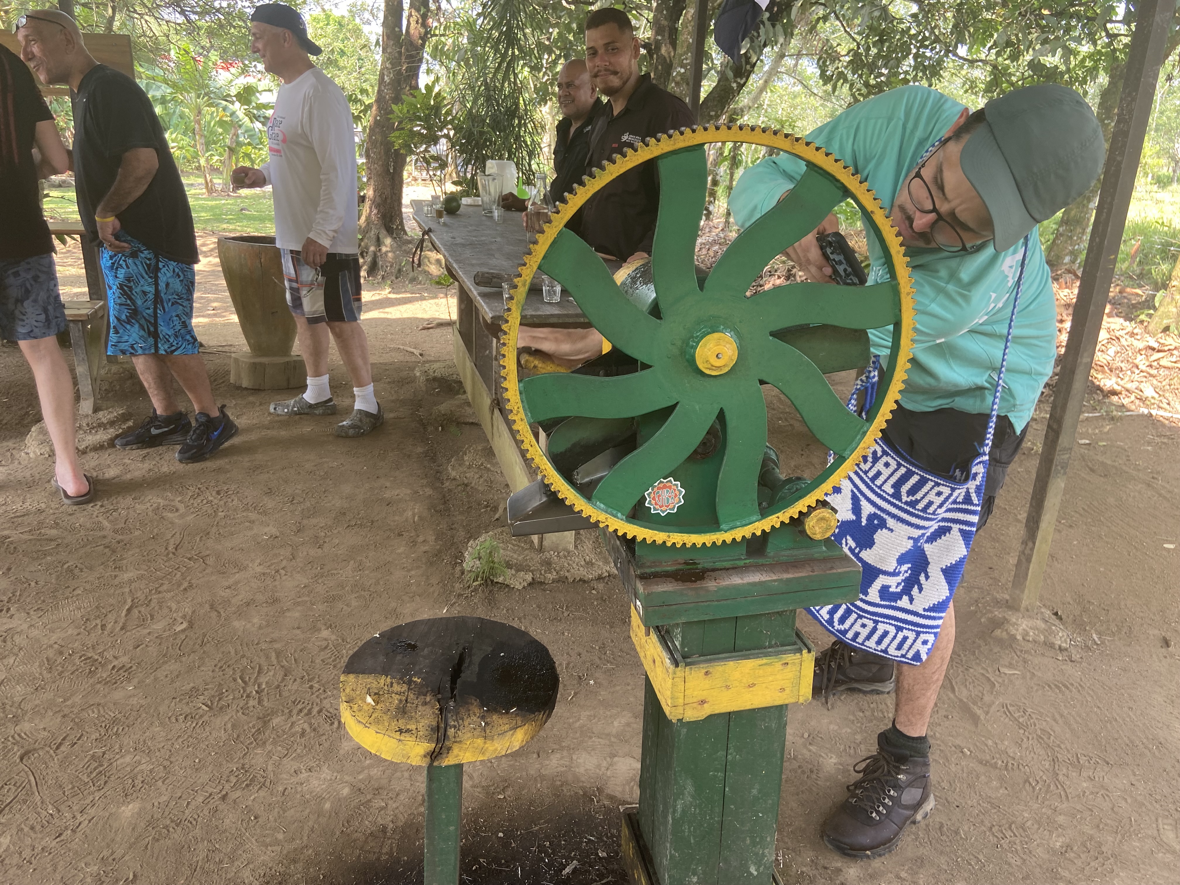 Oh my goodness! The ice cream I was served had a banana flavor—real bananas—not flavoring, and not at all overpowering. So good! Also, on one of the organic farm tours, the visitors were able to crank out juice from sugar cane. It wasn’t bad at all. Some on the tour imbibed with the sugar cane and moonshine. They went back for seconds so I assume they enjoyed it.