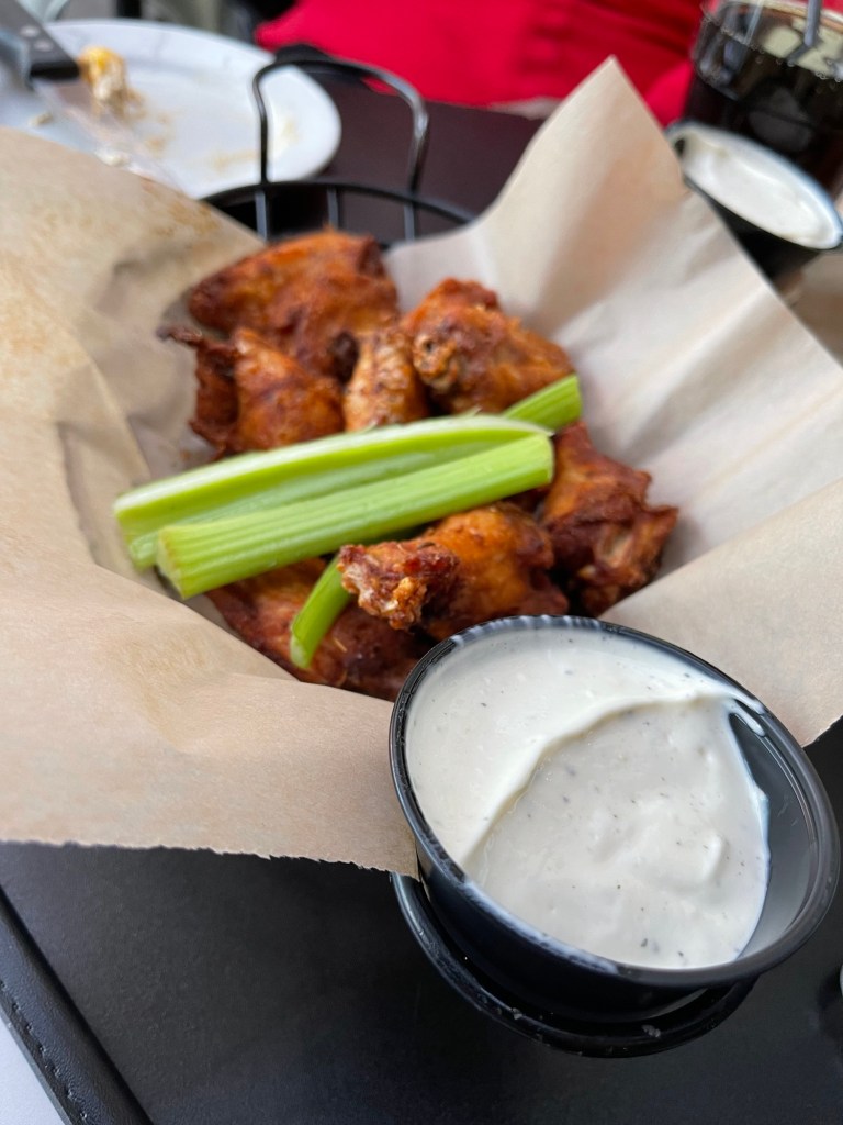 For all my talk about seafood, I decided to go super simple with an order of wings. Fortunately, my choice paid off double because it was on a Wednesday night half-price special. So, I couldn’t just call it a win by paying half-price, I did two orders for sharing among three.